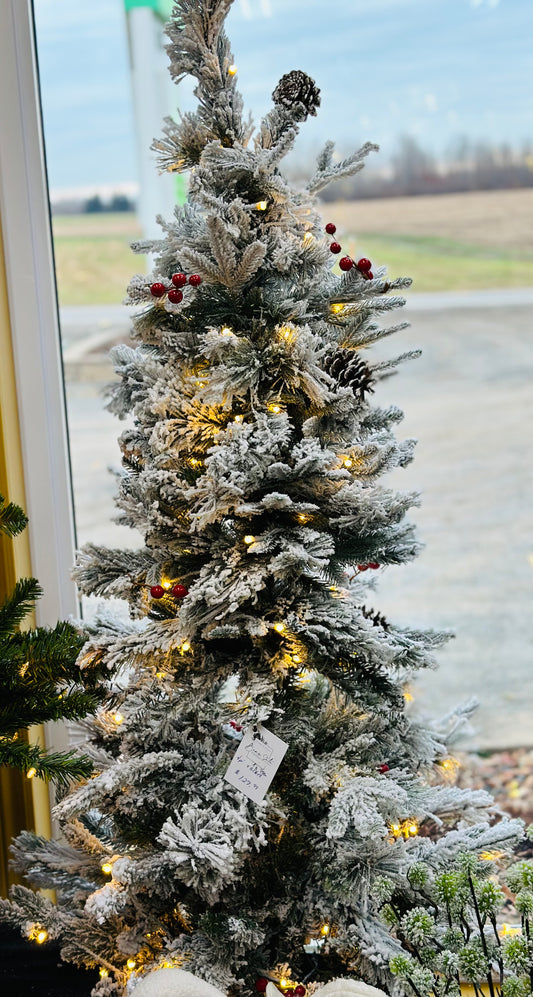 Sapin enneigé et illuminé en pot