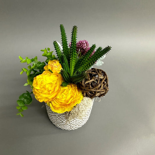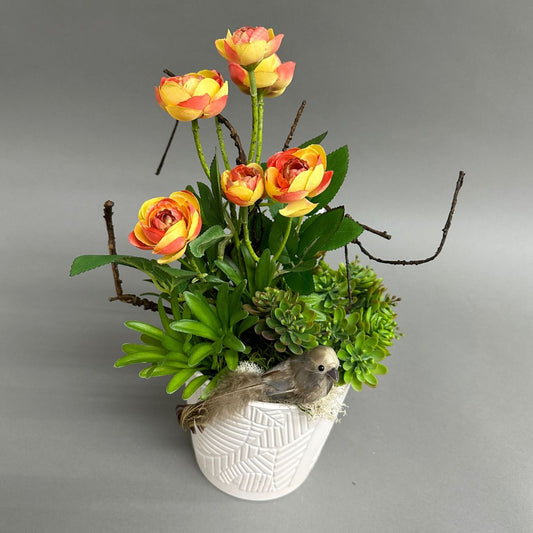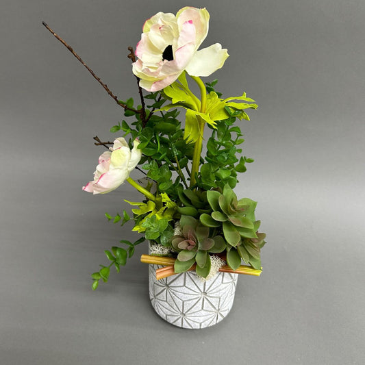Montage de fleurs de soie Renoncule et plante grasses